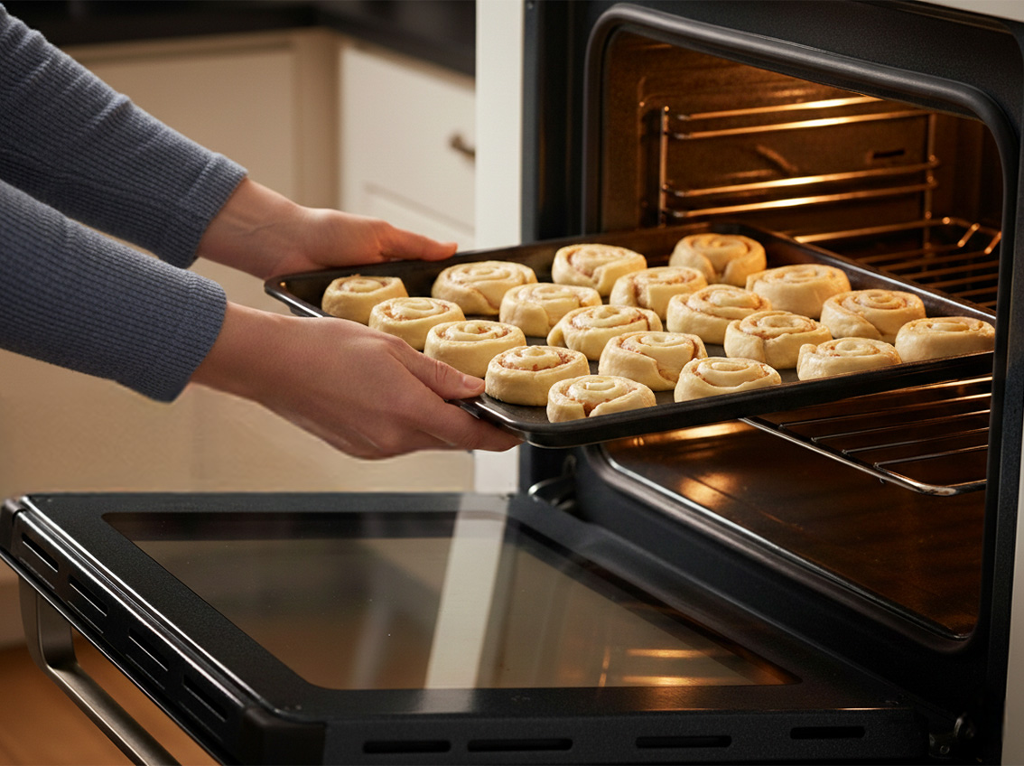 Place the baking sheet in the oven and bake the pinwheels for 14-18 minutes, or until golden brown and puffed on top.