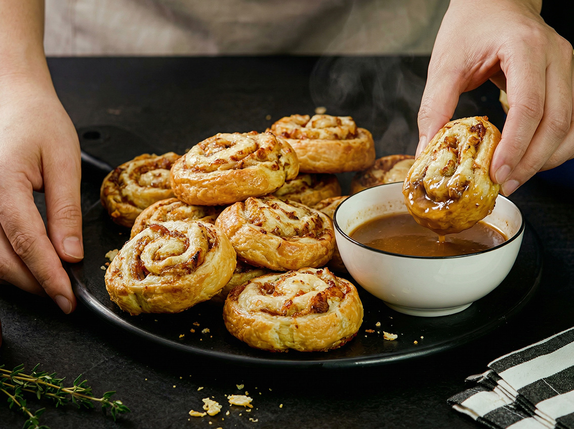 Arrange the baked pinwheels on a platter and serve them with a bowl of warm au jus for dipping. Pair these savory, cheesy French Dip Pinwheels with a chilled Pepsi Zero Sugar for the perfect bite! Ideal for parties, game nights, or indulgent snacking.